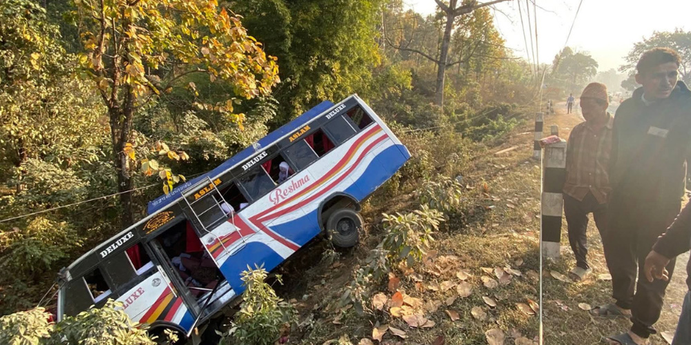 मनहरीको बिजौनामा यात्रुवाहक बस दुर्घटना, २२ जना यात्रु घाइते