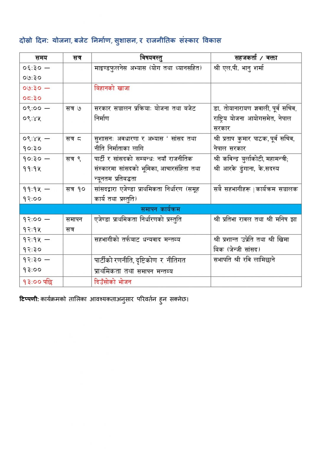 यस्तो छ नयाँ सांसदलाई संसदीय मर्यादा सिकाउने रास्वपाको कार्यतालिका