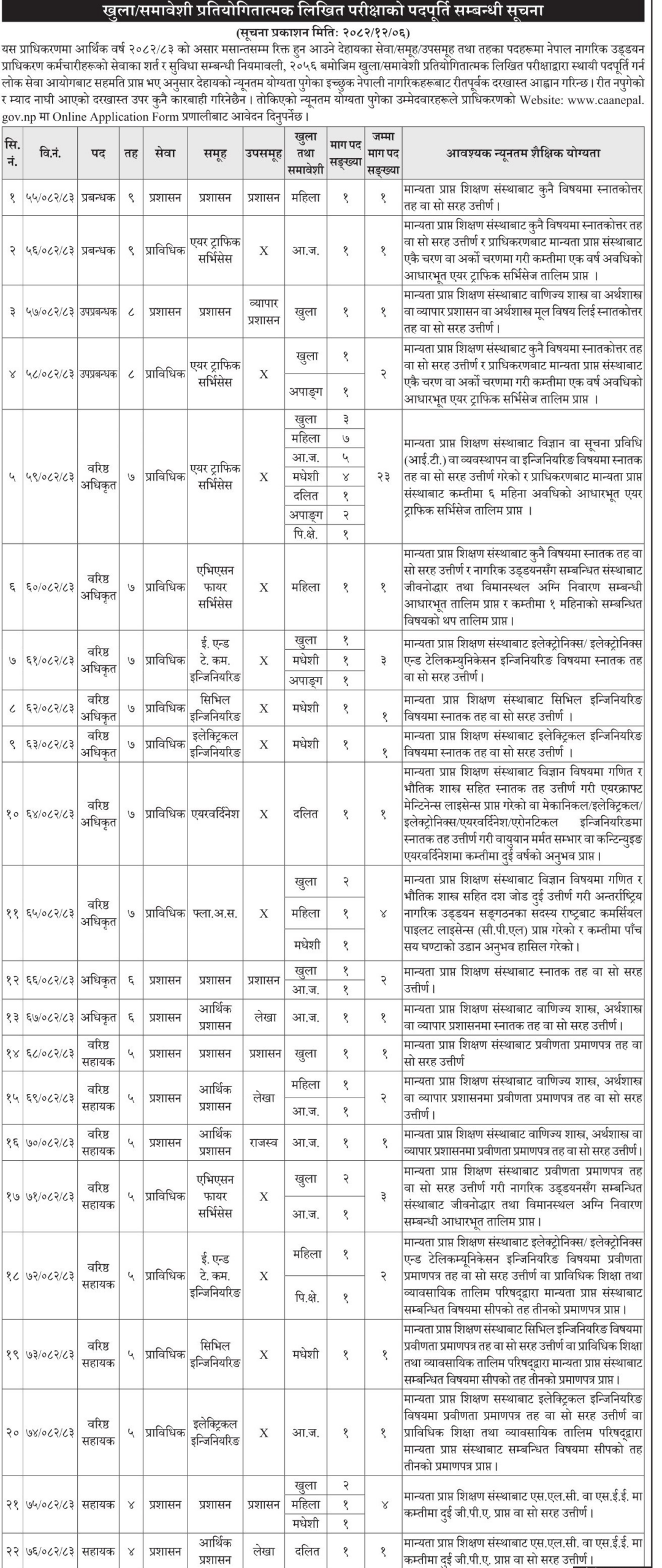त्यस्तै उपप्रबन्धकतर्फ प्रशासनमा एक जना र प्राविधिकमा २ जना कर्मचारी माग गरिएको छ । वरिष्ठ अधिकृत, अधिकृत, वरिष्ठ सहायक र सहायक पदमा विभिन्न संख्यामा कर्मचारी परिपूर्ति गर्न दरखास्त आह्वान भएको छ।
