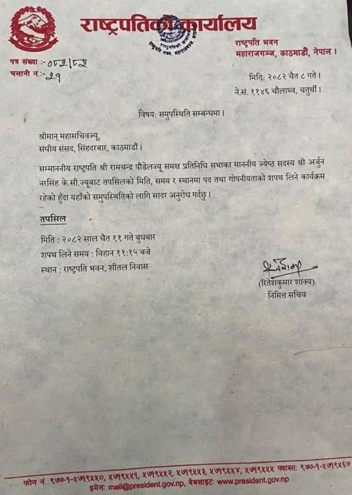 सङ्घीय संसद् सचिवालयले ज्येष्ठ सदस्यका रूपमा केसीको नाम सिफारिस गरेपछि राष्ट्रपति रामचन्द्र पौडेलले शीतल निवासमा उनलाई शपथ खुवाउने भएका हुन् । बुधबार बिहान ११ बजेर १५ मिनेटमा केसीको शपथ ग्रहण कार्यक्रम राखिएको राष्ट्रपति कार्यालयले जानकारी दिएको छ ।