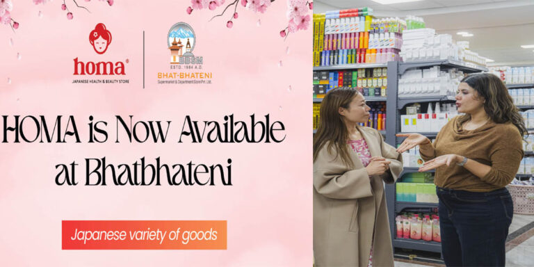 अबदेखि जापानी स्किन केयर तथा कस्मेटिक आयातकर्ता होमाद्वारा नेपाली बजारमा आयात तथा बिक्री वितरण गरिने सम्पूर्ण उत्पादनहरु भाटभटेनी सुपरमार्केटमा उपलब्ध हुने भएका हुन् । होक्काइदो बिजनेस ग्रुप नेपालअन्तर्गतको होमाले सन् २०२३ देखि आधिकारिक रुपमा जापानी कस्मेटीक, स्किन केयर तथा हेल्थ केयर प्रोडक्टस्हरु नेपाली बजारमा भित्र्याएको हो ।