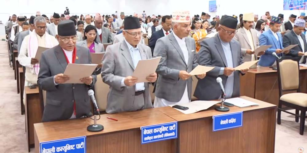 प्रतिनिधिसभाका ज्येष्ठ सदस्य अर्जुननरसिंह केसीले पद तथा गोपनीयताको शपथ गराएका हुन् । संघीय संसद् सचिवालयले दलको सिट संख्याका आधारमा दलहरूको बस्ने ठाउँ तय गरेको छ ।