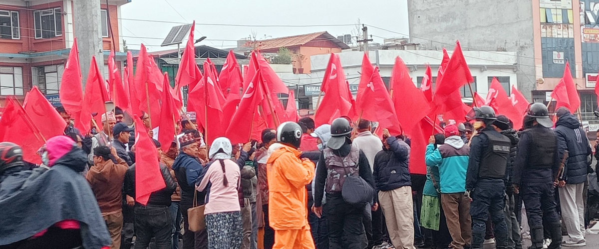 ओली पक्राउको विरोधमा सडकमा उत्रियो एमाले