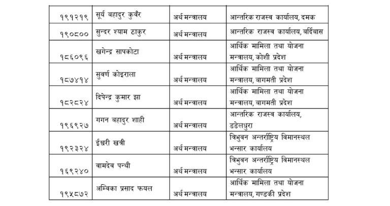 यसबाहेक कतिपय उपसचिवहरूको प्रदेश आर्थिक मामिला तथा योजना मन्त्रालयमा सरुवा भएको छ । अर्थमन्त्री डा। स्वर्णिम वाग्लेले मन्त्रालय सम्हालेपछि पहिलो पटक उपसचिवहरूको सरुवा भएको हो ।