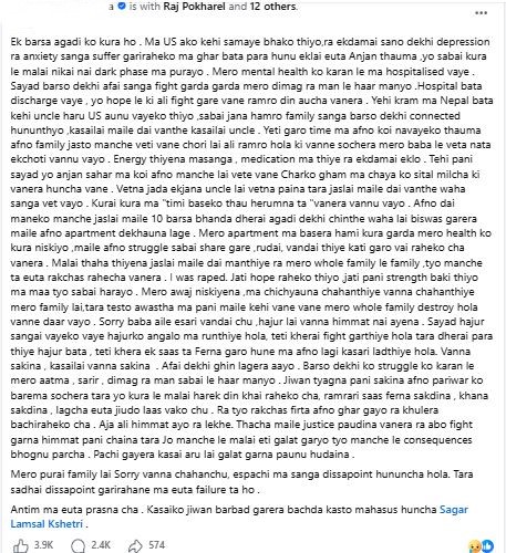 यस्तो छ पीडित युवतीले सामाजिक सञ्जालमा राखेको पोस्ट: