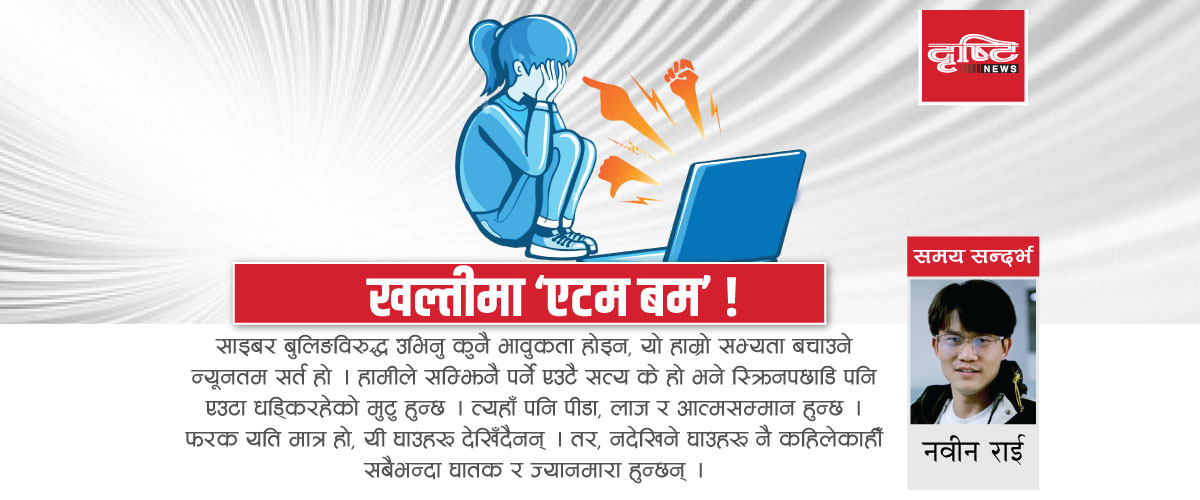तरपनि आजको समाजले साइबर बुलिङलाई निकै हलुका रूपमा लिने भुल गरिरहेको छ । कसैको शरीर, अनुहार, आवाज वा पहिरनमाथि गरिने भद्दा टिप्पणीलाई हामीले आधुनिक शब्दावली दिएका छौँ– यो त केवल ट्रोल हो ! फन हो ! कन्टेन्ट हो !