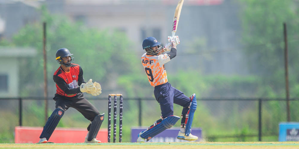 १४२ बल खेलेका उनी २०८ रनमा रिटायर्ड हर्ट भए । उनले आफ्नो इनिङ्समा १५ चौका र १७ छक्का प्रहार गरे । उनको दोहोरो शतकको मद्दतमा एपीएफले मधेशलाई ३९१ रनको लक्ष्य दिएको छ । जुन एक कीर्तिमान हो ।