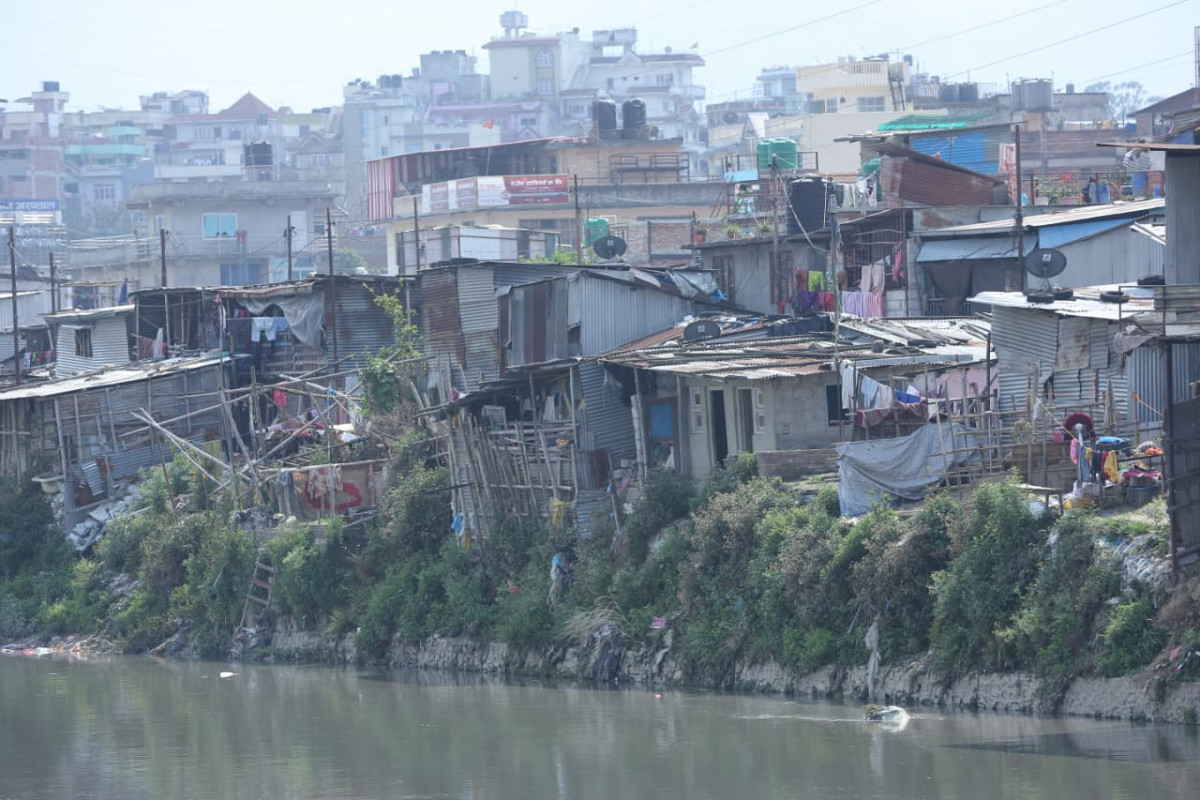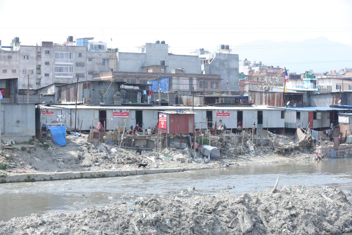 काठमाडौं । काठमाडौंको थापाथलीस्थित बागमती नदी किनार पुग्दा आधुनिक शहरको बीचमा एउटा विरक्तलाग्दो दृश्य देखिन्छ । एकातिर काठमाडौंको वैभव झल्काउने अग्ला कङ्क्रिटका भवनहरू ठडिएका छन् भने अर्कोतिर नीलो र सेतो त्रिपाल, पुराना जस्तापाता र काठका फल्याकले बेरिएका अस्थायी झुप्राहरूको खात छ ।
