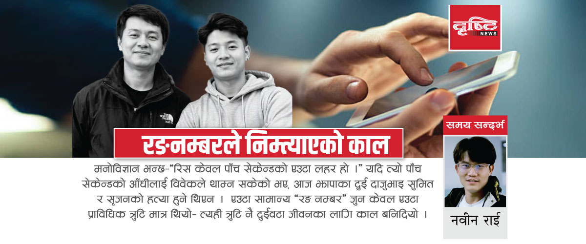 मनोविज्ञान भन्छ– “रिस केवल पाँच सेकेन्डको एउटा लहर हो ।” यदि त्यो पाँच सेकेन्डको आँधीलाई विवेकले थाम्न सकेको भए, आज झापाका ती दुई दाजुभाइ सुमित र सृजनको हत्या हुने थिएन । एउटा सामान्य ‘रङ नम्बर’ जुन केवल एउटा प्राविधिक त्रुटि मात्र थियो– त्यही त्रुटि नै दुईवटा जीवनका लागि काल बनिदियो ।