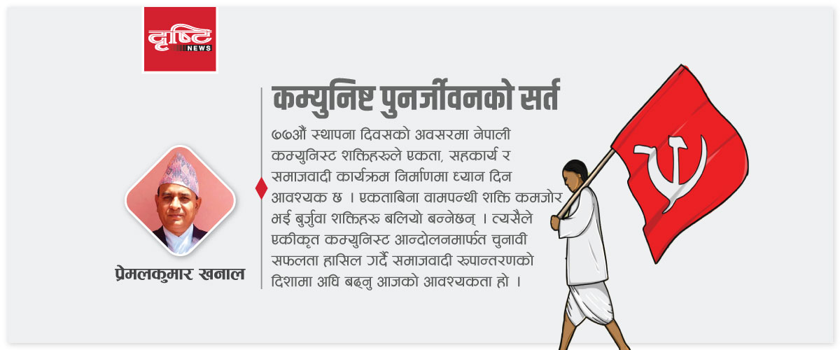 ७७औँ स्थापना दिवसको अवसरमा नेपाली कम्युनिस्ट शक्तिहरूले एकता, सहकार्य र समाजवादी कार्यक्रम निर्माणमा ध्यान दिन आवश्यक छ । एकताबिना वामपन्थी शक्ति कमजोर भई बुर्जुवा शक्तिहरू बलियो बन्नेछन् । त्यसैले एकीकृत कम्युनिस्ट आन्दोलनमार्फत चुनावी सफलता हासिल गर्दै समाजवादी रूपान्तरणको दिशामा अघि बढ्नु आजको आवश्यकता हो ।