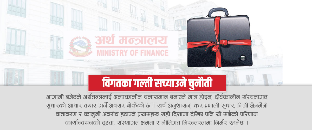 यही पृष्ठभूमिमा अर्थमन्त्री डा. स्वर्णिम वाग्लेले अघि सारेको ‘सर्जिकल रिफर्म’ को अवधारणाले बजेटको समग्र दिशा खर्च अनुशासन, नीतिगत स्पष्टता र संरचनागत सुधारतर्फ केन्द्रित हुने संकेत दिएको छ ।