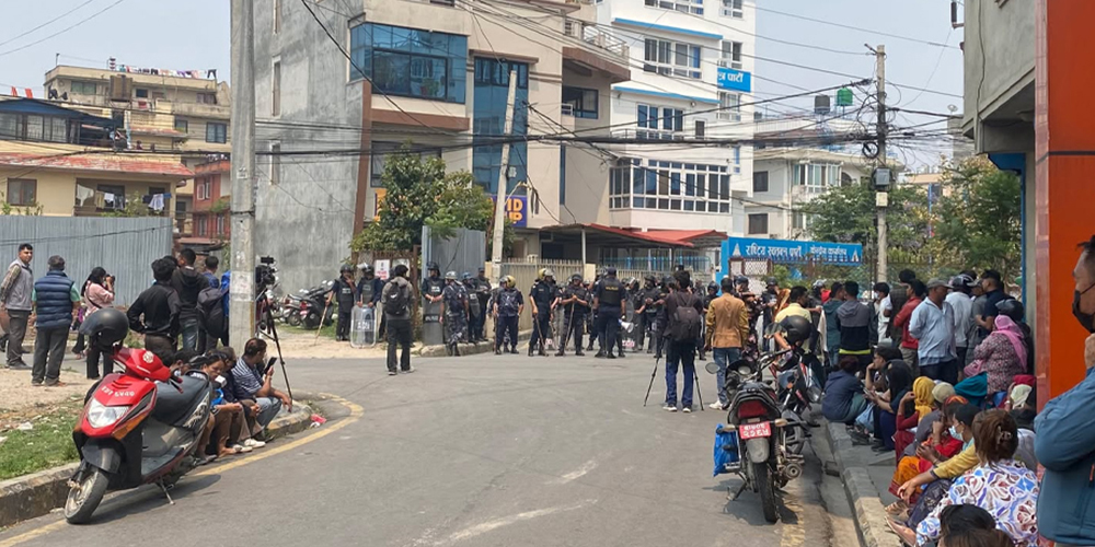 काठमाडौं । राष्ट्रिय स्वतन्त्र पार्टी (रास्वपा) कार्यालयमा सुरक्षा व्यवस्था कडा बनाइएको छ । सुकुम्वासीहरू जाने भएपछि अहिले रास्वपा कार्यालय अगाडि बाक्लो संखयामा नेपाल प्रहरीको टोली तैनाथ गरिएको छ ।