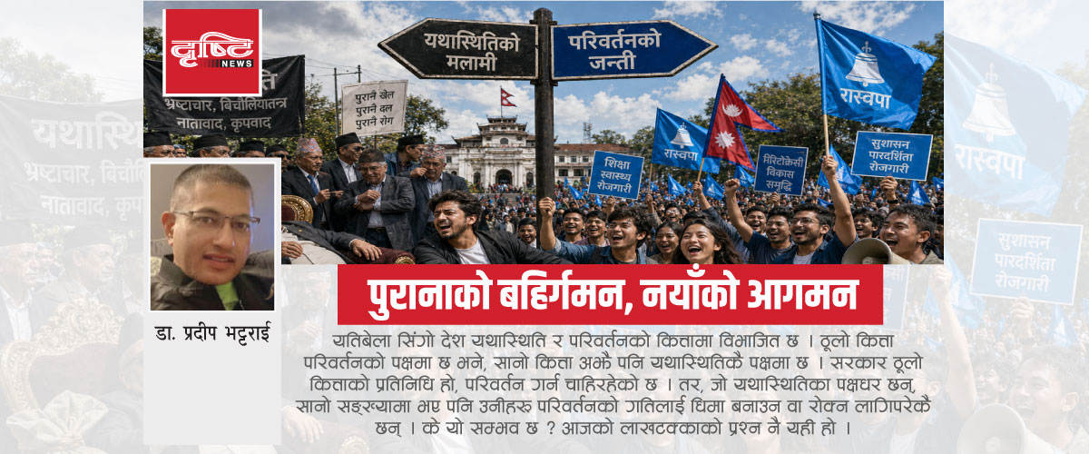 यसरी नै हुने हो, नेपालमा यथास्थितिको अन्त्य र परिवर्तनको सुरुवात । यसैका लागि नै रास्वपा र बालेन सरकारलाई मतादेश प्राप्त भएको हो । त्यो पनि चानचुने हैन, दुई कम दुई तिहाइको । यसको प्रस्ट हेक्का रास्वपालाई त हुनुपर्छ नै, अरूले पनि बिर्सन मिल्दैन ।