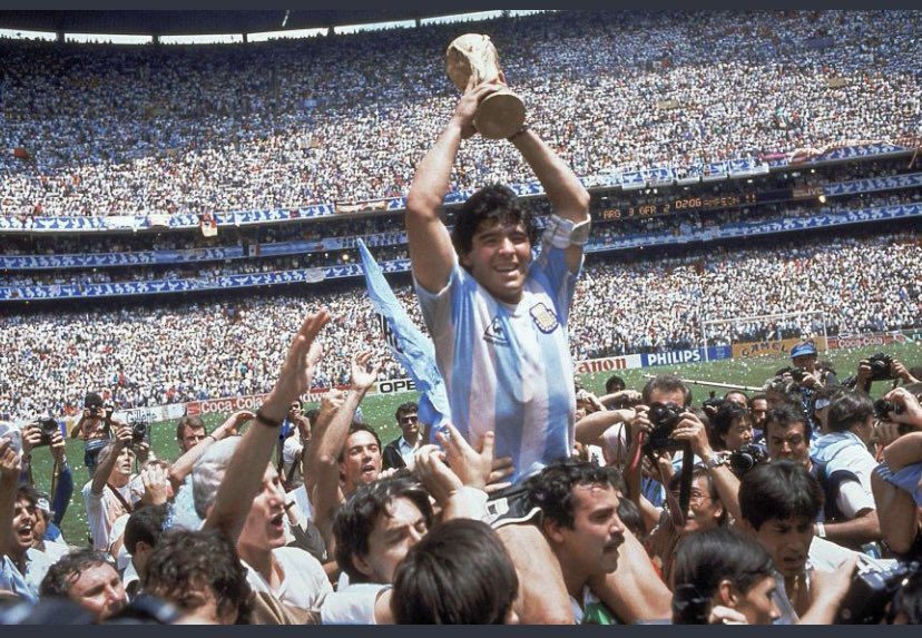 सन् १९८६ को विश्वकप विजेता टोलीका सदस्य म्यारोडोनाले ४ पटक विश्वकप खेले । सन् १९८६ को विश्वकपको क्वाटरफाइनलमा इंल्याण्डविरुद्ध गरेको विवादास्पद गोलका कारण पनि उनी चर्चामा रहे । ह्यान्डबल भएपछि रेफ्रिले नदेखेका कारण गोलको मान्यता दिएका थिए । त्यसलाई म्यारोडोनाले ‘भगवानको हात’ भनेर टिप्पणी गरेका थिए ।