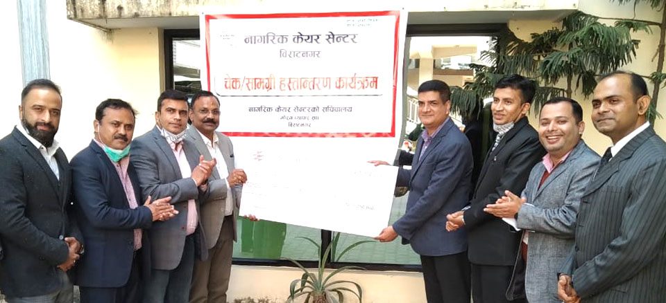 काठमाडौं । ग्लोबल आइएमई बैंक लिमिटेडले विराटनगरस्थित निर्माणाधिन नागरिक केयर सेन्टरको भवन निर्माणको लागि दुई लाख पचास हजार रुपैंया सहयोग गरेको छ । बैंकका प्रदेश नम्बर १ का प्रादेशिक प्रमुख शुभाष सापकोटाले मोरङ व्यापार संघ, विराटनगरमा आयोजित कार्यक्रमका बीच नागरिक केयर सेन्टरका संयोजक पवनकुमार शारडालाई रु दुई लाख पचास हजारको चेक हस्तान्तरण गरेका छन् ।