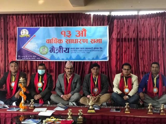 काठमाडौं । मैत्रीय बचत तथा ऋण सहकारी संस्थाको १३आंैँ वार्षिक साधारणसभा सम्पन्न भएको छ । भक्तपुरको बालकोटमा सम्पन्न सभाको उद्घाटन गर्दै प्रमुख अतिथि भक्तपुर बचत तथा ऋण सहकारी संघका निवर्तमान अध्यक्ष राधेश्याम सुवालले सरकारीहरू सरकारको नीति–नियमअनुसार चल्न आवश्यक रहेको बताउँदै सहकारीले वास्तविक बचतकर्ताहरूलाई मद्दत गर्नुपर्ने बताउनुभयो । पछिल्लो समयमा सहकारी संघसंस्थाहरूले मुलुकमा आर्थिक समृद्धिका लागि ठुलो टेवा पु¥याएको उहाँको भनाइ थियो ।