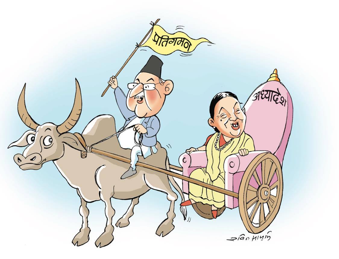 विगतको गहिरो अध्ययन गरेर प्रधानमन्त्रीले स्वेच्छाचारीरुपमा संसद्माथि हमला नगरुन् भन्ने उद्देश्यका साथ संसद्का विकल्पहरु रहेसम्म विघटनको बाटोमा नजानकै लागि संघीय संसद्ले निकै लामो समय विमर्श गरेर संविधान बनाएको थियो । आफू अनुकूल नहुने स्थिति भएपछि कानूनका धारा उपधाराको मनमौजी व्याख्या गर्दैगर्दा कामचलाउ प्रधानमन्त्रीको मन्त्रिमण्डल पुनःगठनको अनुहारबाटै उनको लोकतन्त्रप्रतिको निष्ठा प्रष्ट हुन्छ । असन्तुष्टहरुको चित्त बुझाउन र आफू मजबुत हुन संविधानको गलत व्याख्या उपव्याख्या गर्दैै राज्यको ढुकुटीको मनमौजी प्रयोग निर्वाध हुनेछ भन्ने प्रष्ट भइसकेको छ । ओलीमा सवार मै हुँ राज्य भन्ने चिन्तनको सवार तल्लोतहसम्मै देखिन थालेको छ । कार्यकर्ताहरुसमेत एकआपसमा जुध्न र टुक्रिन थालिइसकेबाट नेपालको वाम आन्दोलनको दुर्दशाको चित्र देख्न सकिन्छ । लिपुलेक, लिम्पियाधुरा र कालापानीको नयाँ नक्शा जारी गरेर नेपाली जनतामा ठूलै भ्रम छोड्न सफल प्रधानमन्त्री ओली सत्तामा टिकिरहन साम्राज्यवादीहरुको उक्साहटमा जस्तोसुकै प्रतिगमनकारी कदम चाल्न पनि अग्रसर हुनसक्ने लक्षण देखिन थालेको छ । सोभियत संघको विघटन अमेरिकी क्षेप्यास्त्रले होइन, कम्युनिष्ट नेता गोर्वाचोभका कारण भयो । नेपालमा पनि कम्युनिष्ट पार्टी र प्रभाव समाप्त पार्न पर्दा पछाडिबाट ओलीको प्रयोग भइरहेको छ । यो षड्यन्त्रबाट कम्युनिष्ट आन्दोलनलाई जोगाउन फेरि एकपटक नेपाली जनताले बलिदानी गर्नुपर्ने बेला आएको छ ।