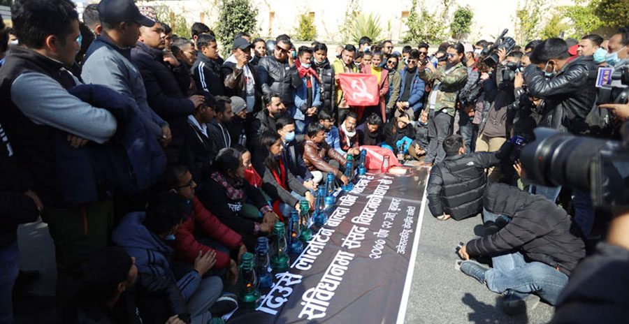 विद्यार्थीहरुले ‘संसद विघटन मान्दैनौँ, संसद विघटनको धारा खोई ? दिउँसै लाल्टिन बाल्यौँ है, असंवैधानिक कदम खारेज गर, अनेरास्ववियु जिन्दावाद, बयलगाडा कहाँ छ, अनेरास्ववियु यहाँ छ’जस्ता नारा लगाएका थिए । माइतीघरबाट सुरु भएको विद्यार्थीहरुको जुलुस नयाँबानेश्वर पुगी कोणसभामा परिणत भएको थियो ।