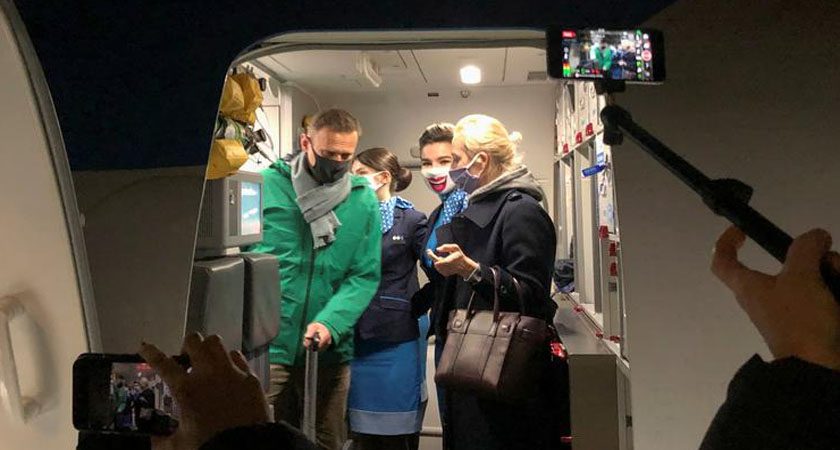 उनी चढेको जहाज सेरेमेत्येभो विमानस्थलमा अवतरण हुनासाथ उनलाई रूसी अधिकारीहरूले नियन्त्रणमा लिएका थिए । नाभाल्नीलाई केही महिनाअघि जहाजमा हुँदा विष खुवाइएको थियो। कोमामा पुगेका उनलाई उपचारका लागि जर्मनी लगिएको थियो। निको भएपछि उनी पत्नी र अन्य सहयोगीहरूसँग आइतबार स्वदेश फर्किएका थिए ।