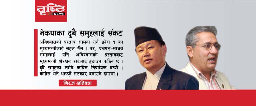 अविश्वासको प्रस्ताव सामना गर्न प्रदेश १ का मुख्यमन्त्रीलाई सहज छैन । तर, प्रचण्ड–माधव समूहलाई पनि अविश्वासको प्रस्तावबाट मुख्यमन्त्री शेरधन राईलाई हटाउन कठिन छ । दुबै समूहका लागि कांग्रेस निर्णायक बन्यो । कांग्रेस भने आफ्नै सरकार बनाउने दाउमा ।