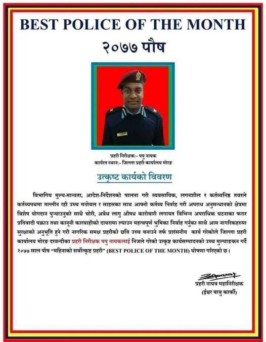 इन्सपेक्टर पप्पु नायक । केही वर्षयता यो नामको प्रहरीमा चर्चा बढेको छ । उत्कृष्ट काम गरेर नै उनको चर्चा बढेको हो ।
