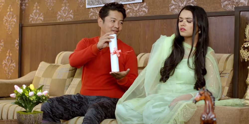 भिडियोमा कुसुम बुटिकको दुईटा सिक्वेन्स इन्ट्रि गरिएको छ । दयाहाङले उषालाई कुसुम बुटिकको पहिरन उपहार दिएको देखाइएको छ भने अर्को दयाहाङमार्फत बुटिकको प्रमोशनल सिक्वेन्स ‘कुसुम द बुटिक’को लोगोसहितको ब्यागको दृश्य कैद गरिएको छ ।