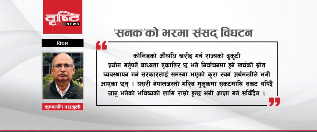 कोभिडको औषधि खरीद गर्न राज्यको ढुकुटी प्रयोग गर्नुपर्ने बाध्यता एकातिर छ भने निर्वाचनमा हुने खर्चको स्रोत व्यवस्थापन गर्न सरकारलाई समस्या भएको कुरा स्वयं अर्थमन्त्रीले भनी आएका छन् । यसरी नेपालजस्तो गरिब मुलुकमा संकटमाथि संकट थपिदै जानु भनेको भविष्यको लागि राम्रो हुन्छ भनी आशा गर्न सकिँदैन ।