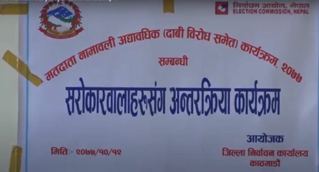 सरकारले वैशाखको १७ र २७ गते आम निर्वाचनको घोषणा गरेसंगै मुलुकका सवै जिल्लामा नामावली अध्यावधीक गर्ने कार्य भइरहेको छ ।