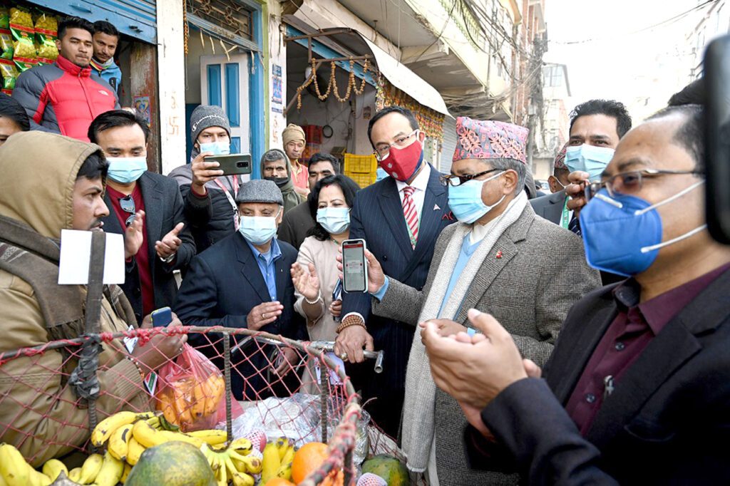 राष्ट्र बैंकका गभर्नर अधिकारीले विभिन्न फलफूल पसलको अवलोकन र निरीक्षण गरेपछि केही फलफुल पसलमा फलफूल खरिद गरी आफ्नो मोबाइल बैंकिङको क्यूआर कोडमार्फत भुक्तानी गरेका थिए ।