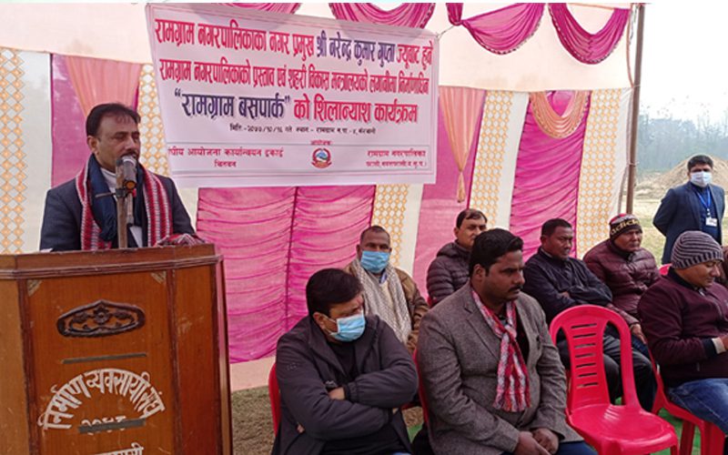 पश्चिम नवलपरासी, १९ माघ । पश्चिम नवलपरासी बजार क्षेत्रलाई आधुनिकीकरण गर्न रामग्राम नगरपालिकाले रामग्राम बसपार्क शिलान्यास गरेको छ । नगरप्रमुख नरेन्द्रकुमार गुप्ताले नगरपालिकाको वडा नम्बर चार केरवानीमा बसपार्कको शिलान्यास गरेका हुन् ।