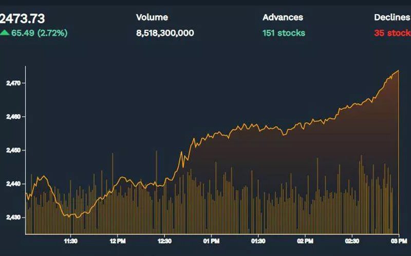 बजारले ऐतिहासिक उचाइ लिएपछि कारोबार रकमसमेत करिब साढे आठ अर्ब रुपैयाँ भन्दा बढी पुगेको छ । सुरुवाती पहिलो घण्टा उतारचढाव देखिए पनि त्यसपछि भने बजारले लगातार गति लिएको हो । बजार बढ्दा डेढ दर्जन कम्पनीको मूल्यमा सकारात्मक सर्किट लागेको छ।