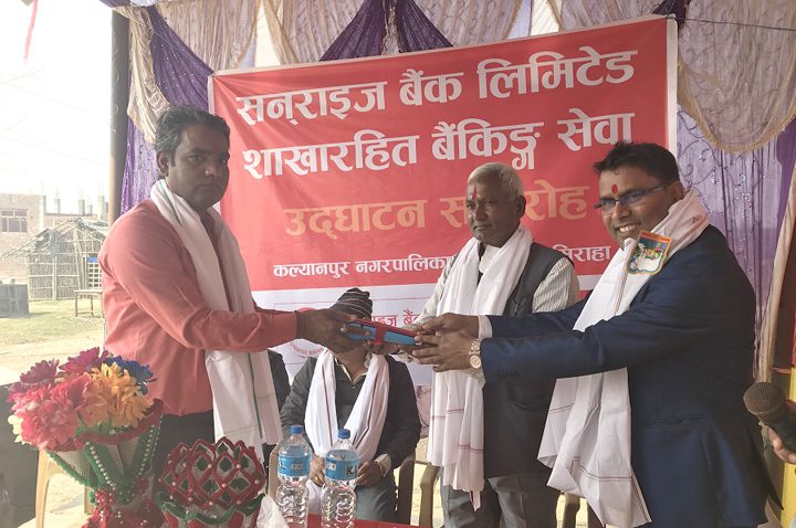 काठमाडौँ । सनराइज बैंकले सिराहा जिल्लाको कल्यानपुर नगरपालिका–७ भेडीयामा शाखारहित बैंकिङ सेवाको सुरुवात गरेको छ । सो शाखारहित बैंकिङ सेवा सञ्चालनमा आएसंगै बैंकको शाखारहित बैंकिङ सेवा संख्या ६९ पुगेको छ । बैंकले कल्यानपुर नगरपालिका–७ भेडीयामा खोलेको शाखारहित बैंकिङ सेवाको प्रतिनिधिका रुपमा दीपेन्द्र शाहलार्ई नियुक्त गरेको छ ।