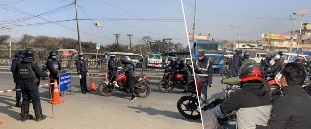दर्जनौं सवारीसाधन, मोटरसाइकललाई गन्तव्य पुग्नुअगावै प्रहरीले फर्काएका छन् । महानगरीय प्रहरी परिसर काठमाडौंले कोटेश्वरको अवरोध हटाउने प्रयास भइरहेको जनाएको छ । भक्तपुर र ललितपुरमा भने आवागमनमा अवरोध गरिएको छैन।