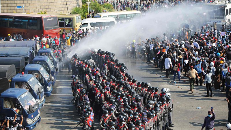 प्रदर्शनका क्रममा मंगलबार राजधानी नेपिडोमा प्रहरीको गोली लागेर घाइते भएकी महिलाको अवस्था चिन्ताजनक छ । उनको टाउकोमा गोली लागेको थियो । प्रदर्शनकारीलाई तितर–वितर पार्न प्रहरीले पहिले पानीको फोहरा र रबर बुलेट चलाएपनि प्रदर्शन नरोकिएपछि गोली चलाएको थियो । प्रहरीले आन्दोलनमा बल प्रयोग बढाएपनि अहिलेसम्म कसैको मृत्यु भने भएको छैन ।