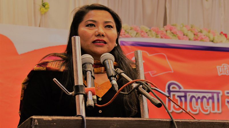 अब, राष्ट्रपतिको कुरा त के गर्न ? बडामहारानीले चुनाव हुन्छ भन्नुभएछ, अस्ति निर्वाचन आयोगको प्रतिवेदन बुझ्दै। म बडामहारानीलाई यहीँ गोरखाबाटै सन्देश दिन चाहन्छु, निर्वाचनको तयारीका लागि कारगेट छाडेर, सुख सुविधा, ऐस आराम, शीतल निवास छाडेर पहिला कोटेश्वरमा आउनुहोस् । चावहिल कि कता बानेश्वरतिर बसाइ छ भन्ने सुनेको थिएँ । होइन भने बालकोटै गए पनि हुन्छ । र, नेपालको कुन जिल्लाबाट चुनाव लड्ने हो, त्यसको तयारी गरेर सन्देश पठाउनुस् । तपाईंसँग म पनि अलि भारी हुन्छ होला । यही रेखा लोप्चनलाई चुनाव लडाउँछौं र हराउँछौँ । तपाईंका लागि म पनि भारी हुन सक्छु । त्यसकारण बडामहारानीले हामीले प्राप्त गरेका, हामीले संघर्ष गरेर ल्याएका अधिकारहरुमाथि गिद्देदृष्टि लगाएर एउटा गुटको, खास गुटको मान्छेको तुष्टि फेर्नका लागि गरिएका असंवैधानिक कदम किमार्थ पनि स्वीकार्य हुन सक्दैन । त्यसकारण यो नेकपा एमालेले २०५० सालमा गरेको भुल थियो । यहाँ अन्यथा नहोस् । तमाम दिदीबहिनी हुनुहुन्छ, शहीद परिवार हुनुहुन्छ । यहाँहरुलाई भन्न खोजेको होइन । मदन भण्डारीको हत्या पछाडि सेतो साडी लाएर जुन शक्ति आर्जन गर्ने गलत सांस्कृतिक अभ्यास गरेको थियो, नेकपा एमालेले त्यसको प्रतिउत्पादन हो, विद्या भण्डारी । आज यो संविधानको चीरहरण गर्ने कारण बनेको छ । त्यसकारण संस्कृति पनि सही हुनुपर्ने रहेछ । धरानमा हामीले चुनाव हार्नुको कारण पनि त्यही हो । धरानमा मेयर बिरामी भएर बित्नुभयो । मेयरका श्रीमतीलाई टिकट नदिए बापत भनेर भोट हालेनन् । र, त्यहाँ कांग्रेसले जित्यो । सेन्टिमेन्टको, इमोसनल ब्ल्याकमेलिङको राजनीति पनि बन्द गर्नुपर्ने हुन्छ । राजनीति विचारधाराकै गर्नुपर्दछ । त्यसकारण जब विचार सिद्धिन्छ । कपाल देखाएर, नाक देखाएर, छाला देखाएर, लुगा देखाएर जब राजनीति गरिन्छ नि, पुग्ने त्यहीँ हो । त्यसबाट आउने चिज पनि त्यही हो । त्यसैले हामीले गलत काम गरेकै कारणले, नारायणकाजी कमरेडलाई पनि थाहा छ, दोस्रो पटक विद्या भण्डारीलाई राष्ट्रपति नबनाऔं भनेर सचिवालयका नेताहरुलाई सबैको घरमा देउसी खेल्न गएको हामी । उहाँहरूले कानमा तेल हल्नुभयो । त्यतिञ्जेलसम्म उहाँहरुको विद्या भण्डारीले केही बिगारेको थिएन । हाम्रो पनि त बिगारेको थिएन । अब थाहा पाउनुभयो । त्यसकारण उहाँहरूभन्दा हामी नै दूरदर्शी थियँैं भन्ने त प्रमाणित भयो नि, सबै नेता कमरेडकोमा गएको हामी । एउटा सेरोमोनियल पदमा मान्छे दोहोर्याइरतेहर्याइ किन राख्ने ? अको कुरा प्रधानमन्त्री भइसकेको मान्छेलाई पनि राष्ट्रपति बनाउनु हुन्न भन्ने विचार छ । यद्यपी मेरो निजि विचार हो ।