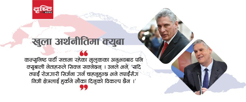 हवाना, ३० माघ । क्युबाले यसपटक एउटा आधारभूत संरचना परिवर्तन गर्न खोज्दैछ । दशकैँसम्म कडा र केन्द्रीकृत नियन्त्रणपछि क्युबाको वामपन्थी सरकारले आफ्नो अर्थतन्त्रको ठूलो हिस्सा निजी क्षेत्रका लागि खुला गर्न लागेको छ ।