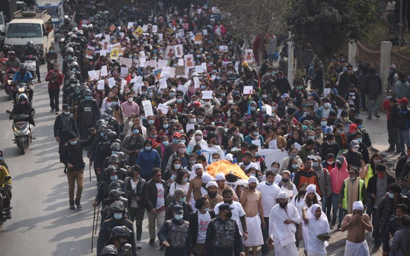 मार्चपास अघि बसन्तपुरमा साङ्लोमा बाधिएर युवाहरुले हिंसा र विभेदविरूद्धका घट्नाको बिरोध गरेका थिए ।