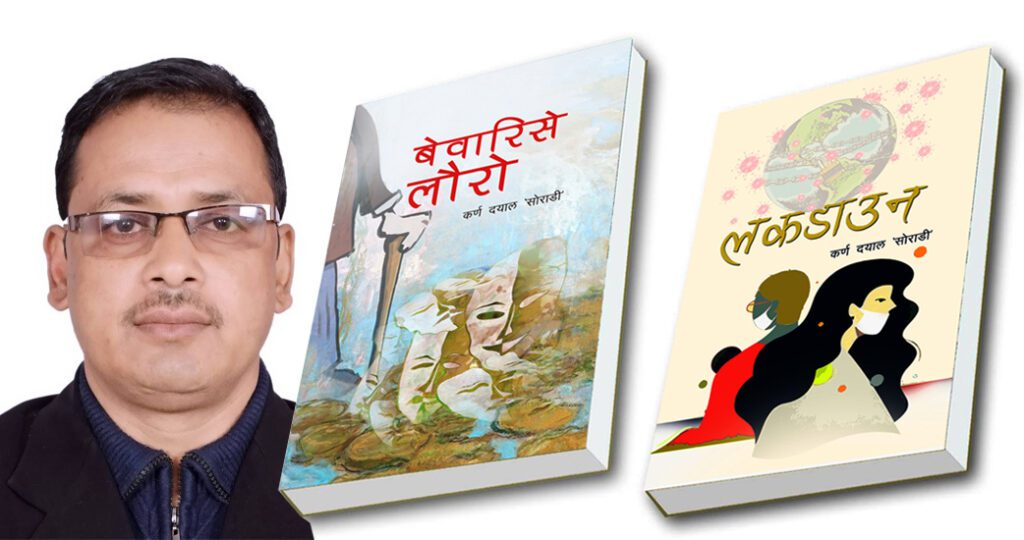 काठमाडौं, २ फागुन । मोफसलमा रहेर निरन्तर साहित्य साधनामा सक्रिय कवि एवं गजलकार कर्ण दयालका नवीतम दुई कृति बजारमा आएका छन् । दयालका पछिल्ला दुई कृति ‘बेवारिसे लौरो’ कवितासंग्रह र ‘लकडाउन’ गजलसंग्रह हालै प्रकाशित भएका हुन् ।
