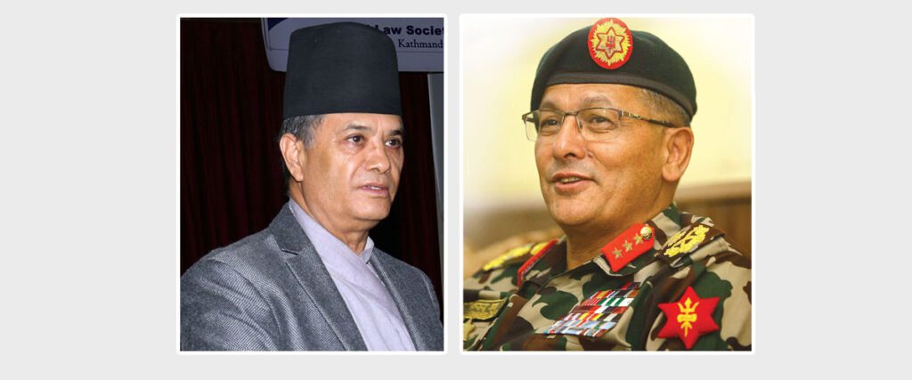 काठमाडौैं । प्रतिनिधिसभा विघटनविरुद्धको मुद्धामा फैसला हुने दिन नजिकिदै जाँदा प्रधानन्याधीश चोलेन्द्र शमशेर जबरा र प्रधानसेनापति पूर्णचन्द्र थापाबीच चेटवार्ता भएको छ । संवैधानिक राजनीतिक संकटको बेला भएको यो भेटलाई अर्थपूर्ण मानिएको छ । सोमबार दिउँसो प्रधानन्याधीश जबरालाई भेट्न प्रधानसेनापति थापा सर्वोच्च पुगेका हुन ।