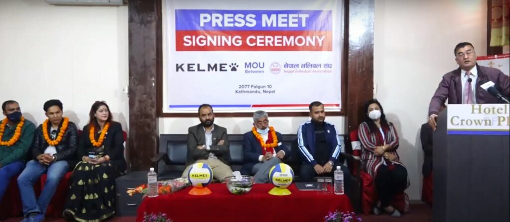 केल्मीले भलिबललाई दुई वर्षको लागि प्रायोजन गरेको हो । सम्झौतासँगै केल्मीले संघलाई २ सय ५० वटा बल उपलब्ध गराउने छ । यस्तै केल्मीले महिला र पुरुषका लागि ट्रयाकसुट २०–२० सेट, अफिसियलका लागि जर्सी, खेलाडीका लागि जुत्ता मोजा, ट्रेनिङ जर्सी आदि उपलब्ध गराउने छ ।