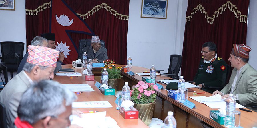 काठमाडौं । प्रधानमन्त्री एवं राष्ट्रिय सुरक्षा परिषद्का अध्यक्ष केपी शर्मा ओलीका अध्यक्षतामा राष्ट्रिय सुरक्षा परिषद्को नियमित बैठक आज बसेको छ ।
