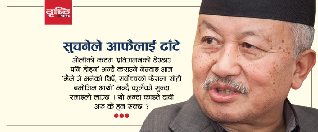 ओलीको कदम प्रतिगमनको छेउछाउ पनि होइन भन्ने नेम्वाङ लाज छोप्ने टालो खोज्दैछन् । उनी भन्छन्– ‘सर्वोच्च अदालतको व्याख्या संविधानको हकमा भयो । रेकर्ड बिग्रेको होइन, रेकर्ड राम्रो बनेको छ ।’