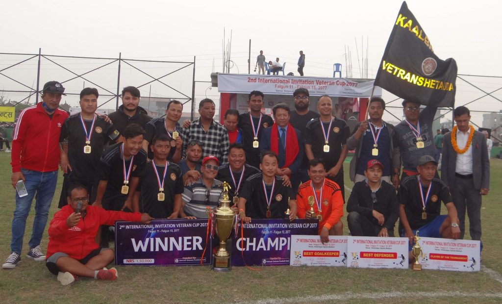 चितवन । दोस्रो संस्करणको अन्तर्राष्ट्रिय आमन्त्रण चितवन भेट्रान कपको उपाधि कालभैरव हेटौँडाले हात पारेको छ । आज सम्पन्न फाइनल खेलमा बुटवल उपमहानगरपालिका भेट्रान बुटवललाई टाइब्रेकरमा पराजित गर्दै कालभैरव हेटौँडाले उपाधि हात पारेको हो ।