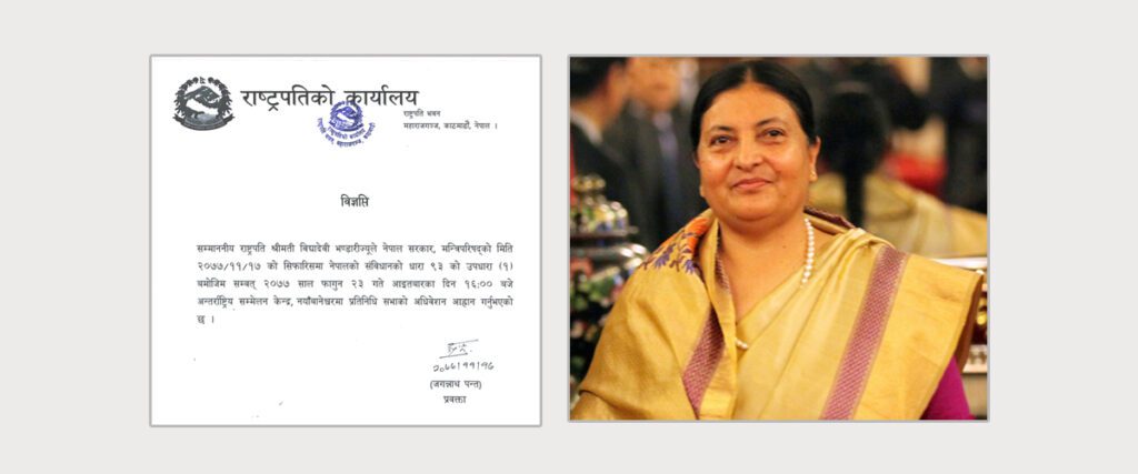 राष्ट्रपतिबाट फागुन २३ गते प्रतिनिधिसभाकाे अधिवेशन आह्वान
