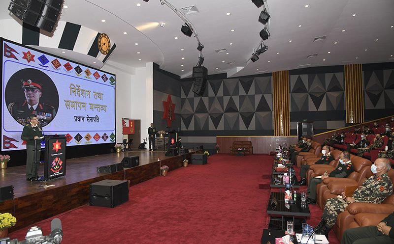 काठमाडौं । नेपाली सेनाको महत्वपूर्ण नीति तथा योजना निर्माणमा ठोस योगदान पुर्याउने तीन दिने ‘पृतनापति समन्वयात्मक बैठक–२०७७’ सम्पन्न भएको छ । सैनिक मुख्यालय जंगी अड्डामा बुधबारदेखि सुरु भएको बैठक शुक्रबार सकिएको हो ।