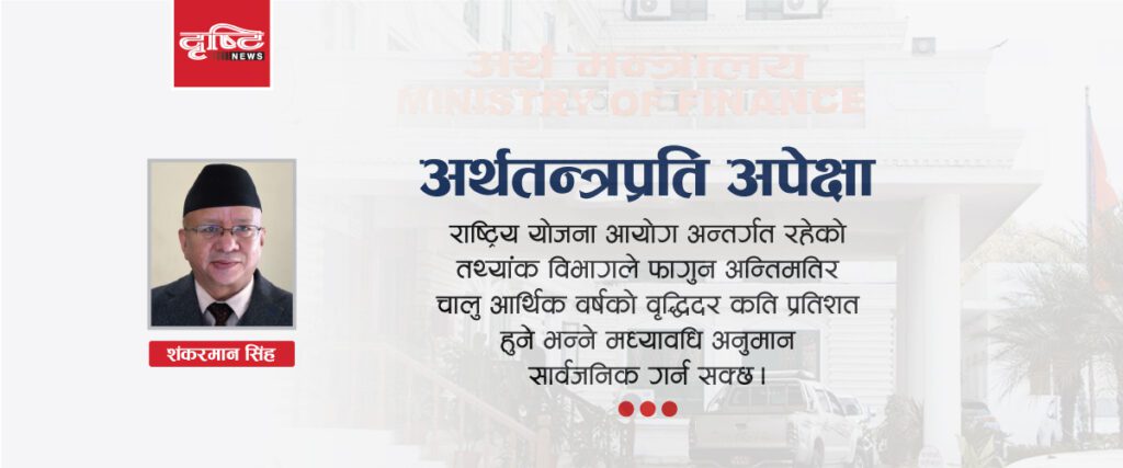 राष्ट्रिय योजना आयोगअन्तर्गत रहेको तथ्यांक विभागले फागुन अन्तिमतिर मात्र चालु आवको आर्थिक वृद्धिदर कति प्रतिशत हुने मध्यावधि अनुमान सार्वजनिक गर्नसक्छ । हुन त अर्थ मन्त्रालयले पनि बजेटको खर्च तथा आम्दानीको आधारमा एउटा अनुमान गर्नसक्ने थियो । कोभिड–१९ को कारण थिलथिलो भएको अर्थतन्त्रमा अझै अपेक्षाकृत सुधार आउन सकेको छैन ।