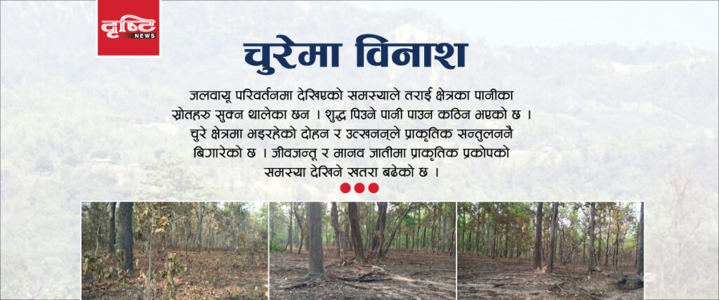 जलवायू परिवर्तनमा देखिएको समस्याले तराई क्षेत्रका पानीका स्रोतहरु सुक्न थालेका छन । शुद्ध पिउने पानी पाउन कठिन हुन थालेको छ । चुरे क्षेत्रमा भइरहेको दोहन र उत्खननले प्राकृतिक सन्तुलननै बिगारेको छ । जीवजन्तू र मानव जातीमा प्राकृतिक प्रकोपको समस्या देखिने खतरा बढेको छ ।