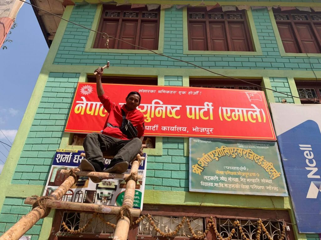 भोजपुर । भोजपुर एमालेले पनि पार्टी कार्यालयमा नेकपा एमालेको साइनबोर्ड राखेको छ ।