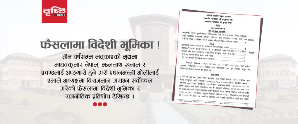 तीन वर्षसम्म लट्काएको मुद्दामा माधवकुमार नेपाल, झलनाथ खनाल र प्रचण्डलाई अप्ठ्यारो हुने गरी प्रधानमन्त्री ओलीलाई एमाले अध्यक्षमा विराजमान गराउन सर्वोच्चले गरेको फैसलामा विदेशी भूमिका र राजनीतिक प्रतिशोध देखिन्छ ।