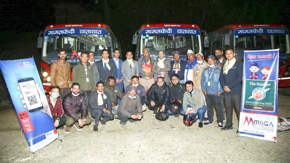 मेगा बैंक र गागलफेदी यातायात प्रालिबीच बिशेष समारोहबीच क्यूआर कोडबाट भाडा भुक्तानी ब्यवस्थाको शुभारम्भ गरिएको हो । कार्यक्रममा मेगा बैंकका प्रमुख संचालन अधिकृत राजेश शर्माले मेगा बैंकले ‘हलोदेखि हाइड्रोसम्म’ लगानी गर्ने जानकारी दिँदै यातायात, शिक्षा, स्वास्थ्य, कृषि, महिला उद्यमी, घर लगायतका लागि सहुलियत ब्याजमा कर्जा उपलब्ध गराउने प्रतिबद्धता व्यक्त गरे ।